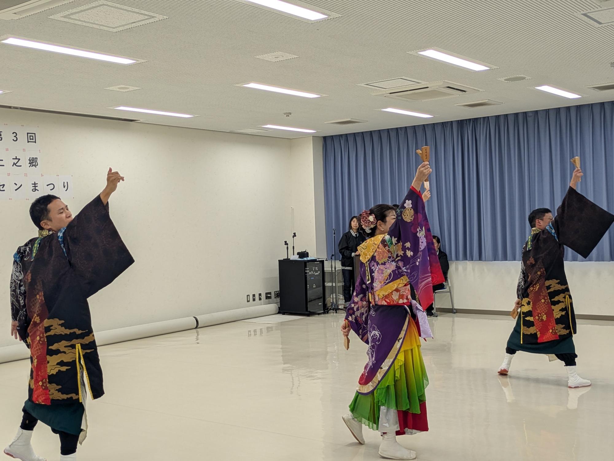 午前中の出し物の最後に、運動会の3・4年生団演でお世話になった「紀州龍神大阪支部」のみなさんのよさこいの踊りがありました。あでやかな衣装を着て踊る姿は、とてもかっこよかったです。