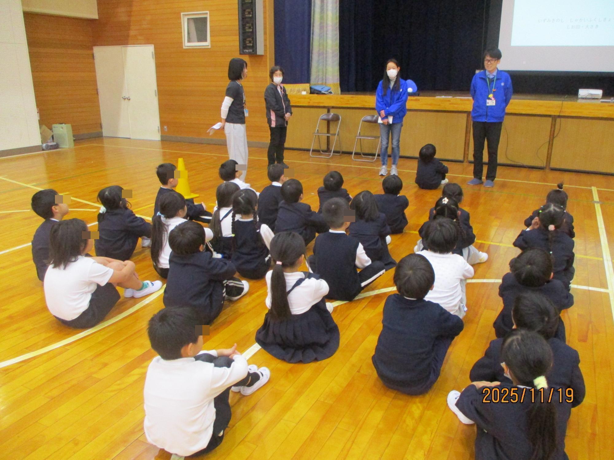 11月19日(水曜日)の2時間目に、社会福祉協議会の方々に来校いただき、1年生がボッチャ体験をしました。