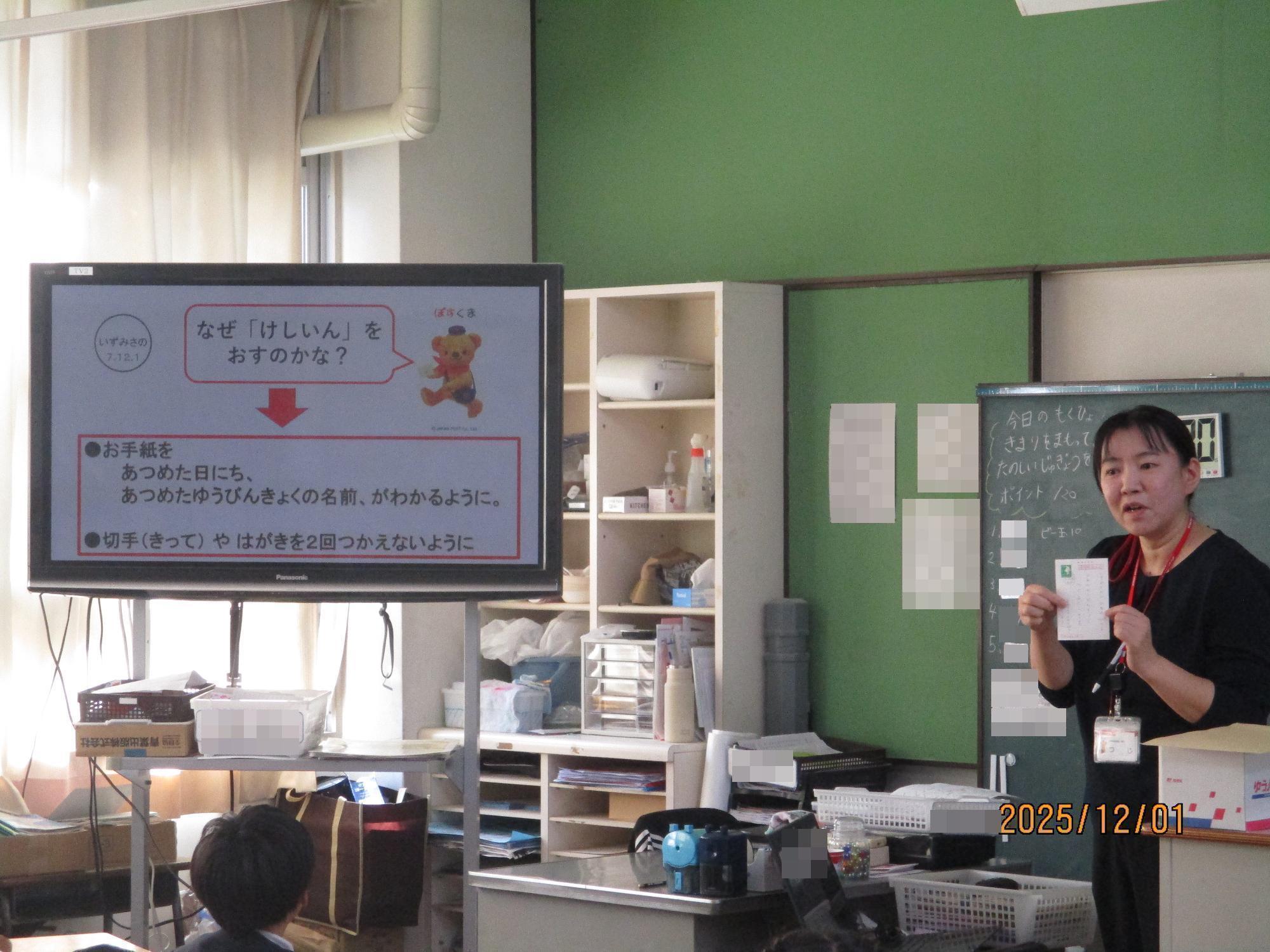 4時間目に、2年生を対象に日根野郵便局の方にご来校いただき、出前授業を行いました。