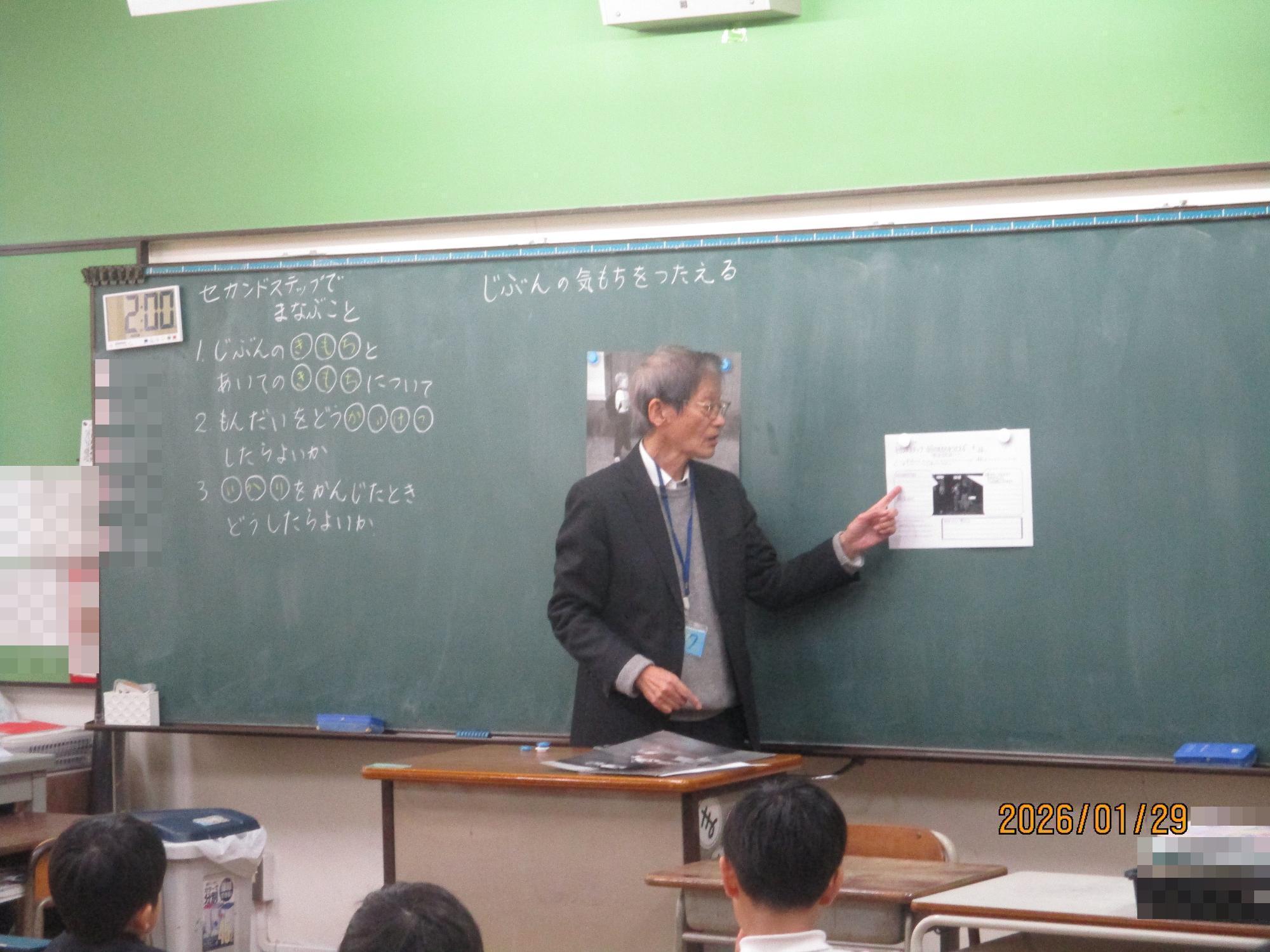 2時間目に2年生、3時間目に1年生を対象にセカンドステップを実施しました。セカンドステップでは、教材を通じて自分や相手の気持ちを考えたり、人間関係の問題の解決方法を考えたり、怒りを感じた時の対処について考えたりする授業です。