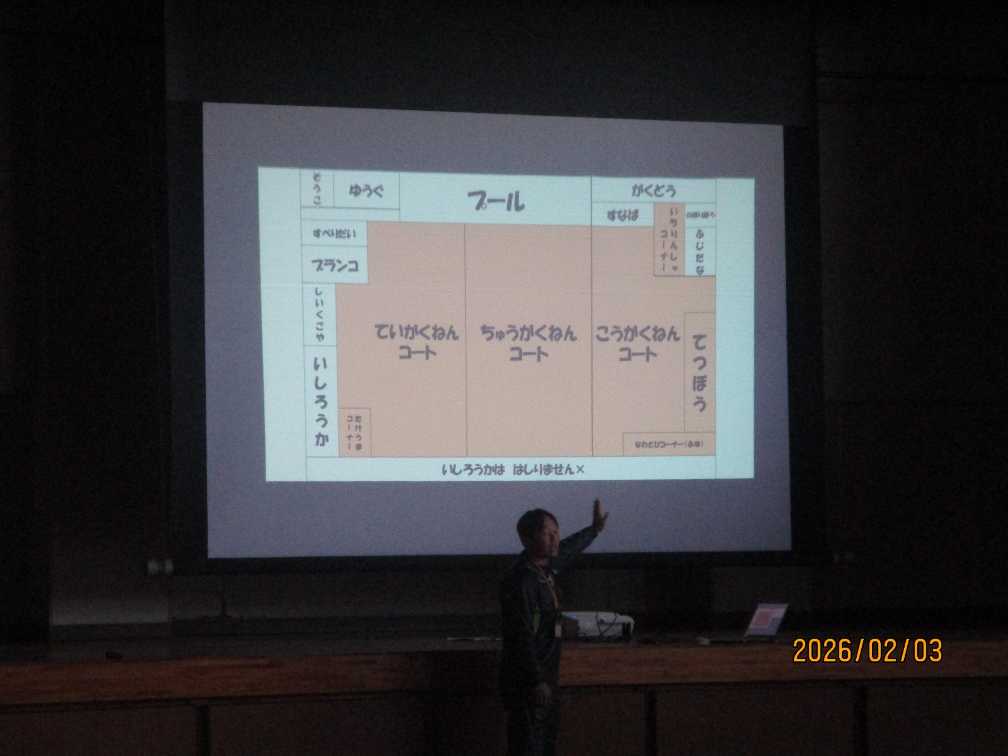 生徒指導の先生からは、グラウンドの遊び場所の配置の説明がありました。