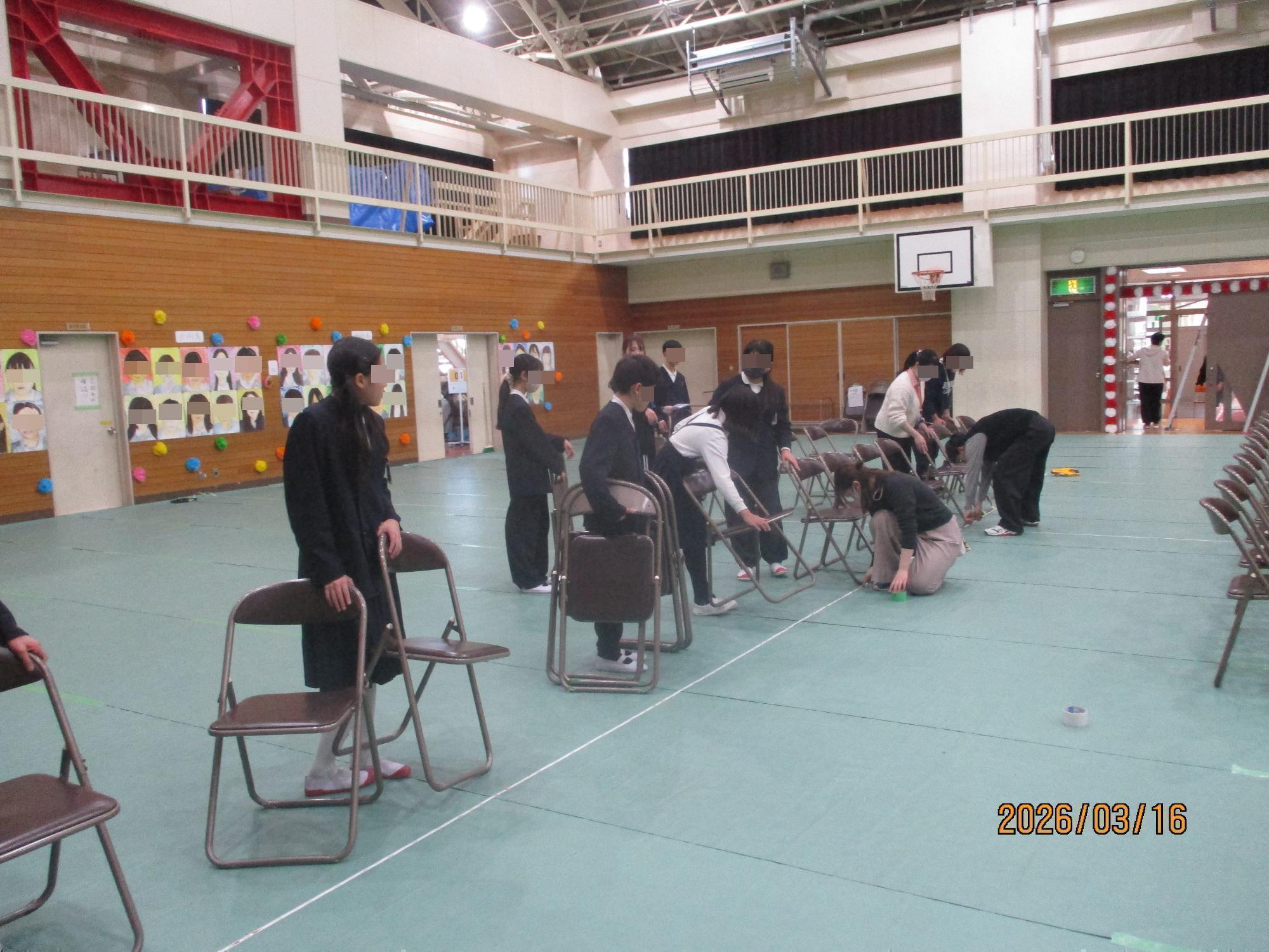 式場の椅子を並べたり、飾り付けをしてくれたりしました。また、トイレの清掃や廊下や階段など、卒業生のために心を込めて掃除や準備をしてくれました。立派な式場に整いました。