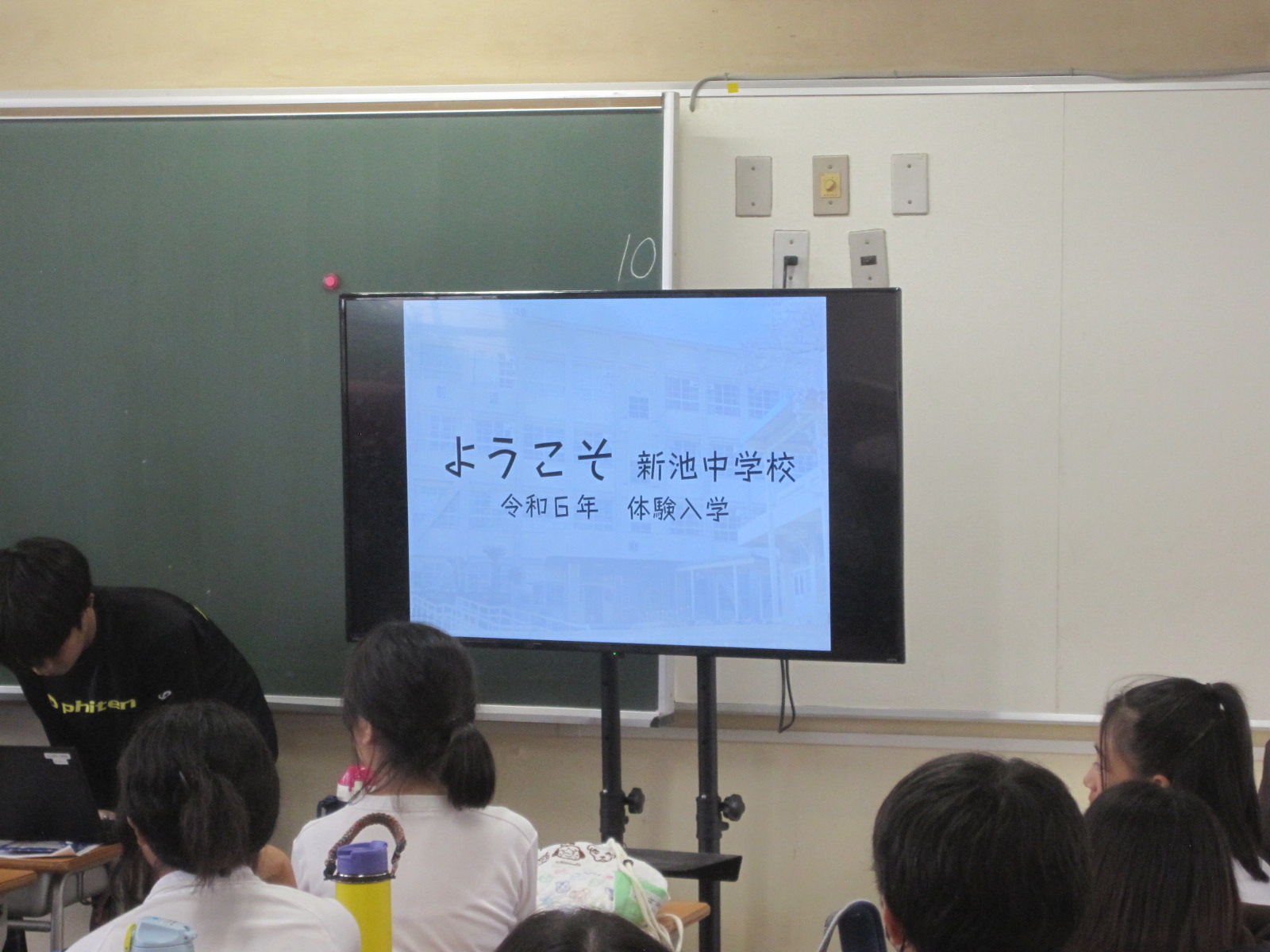 最初に新池中学校の先生から説明してもらいました。