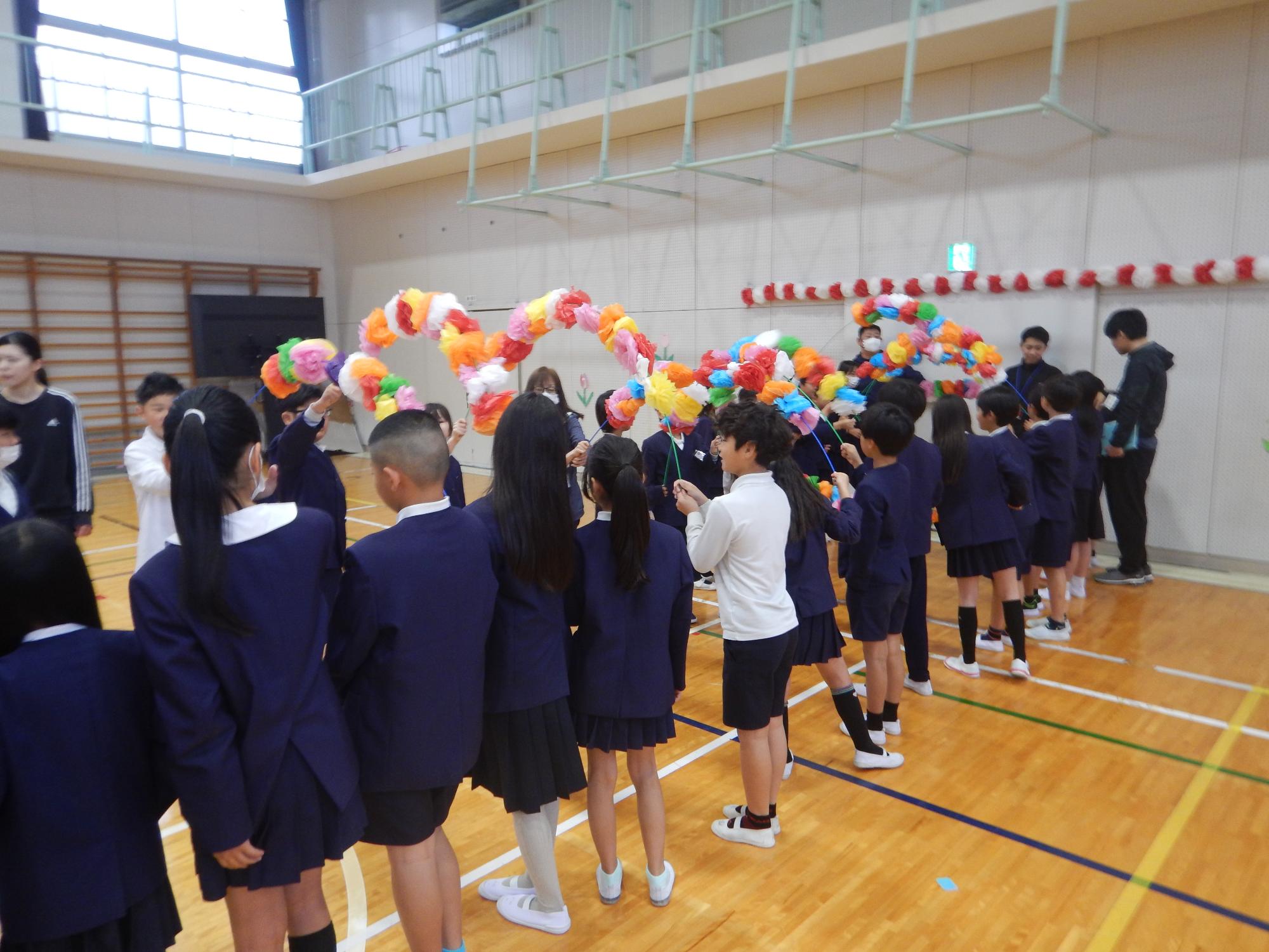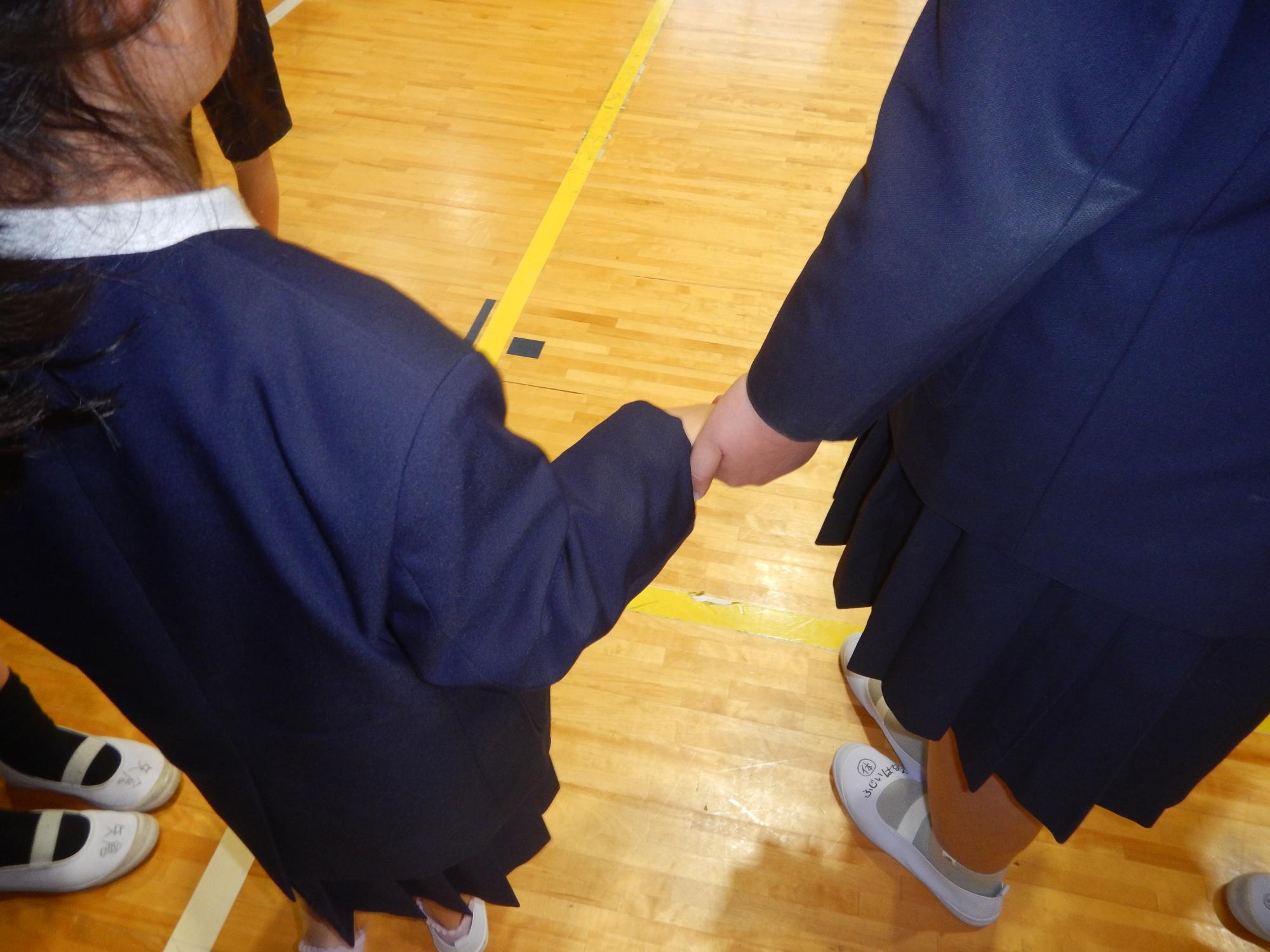 6年生が1年生の手をしっかりとにぎって入場しました。