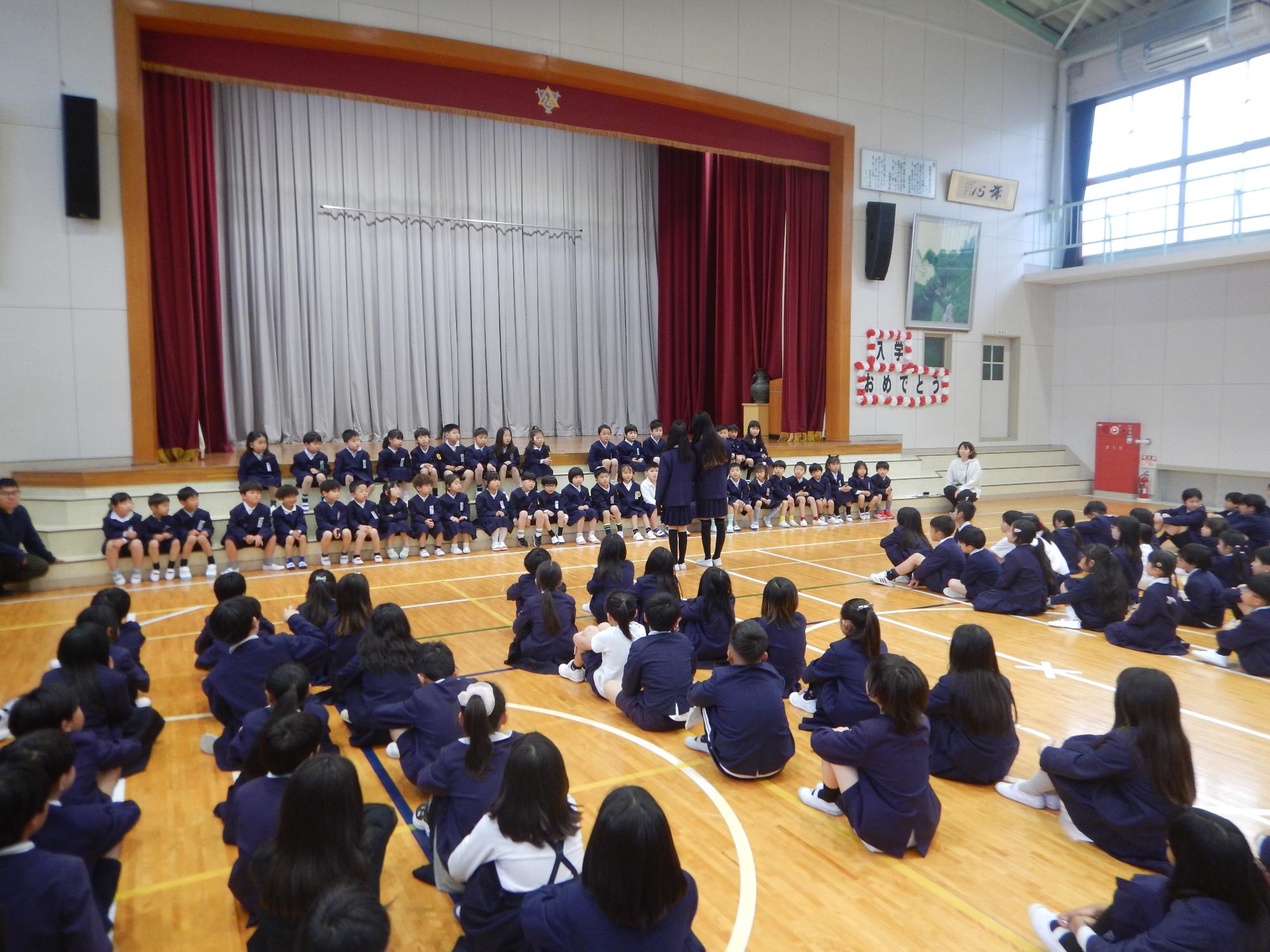 入場した後、旧の代表委員会の子どもたちがしっかりと歓迎の言葉を言ってくれました。