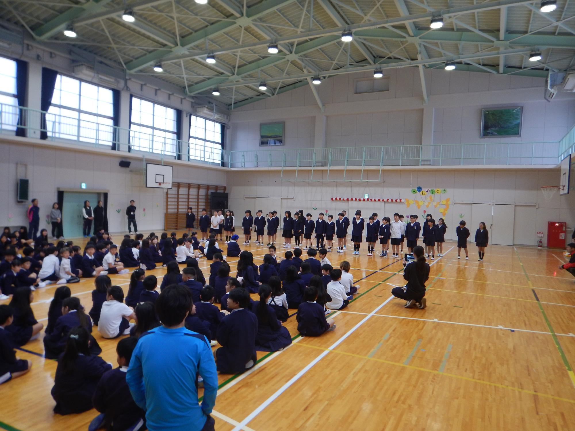 そのあと3年生が『世界中の子どもたちが』を、5年生が『小さな世界』を歌ってくれました。