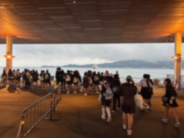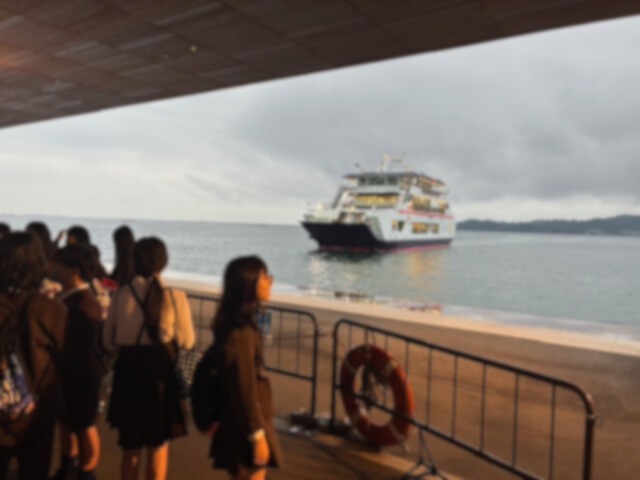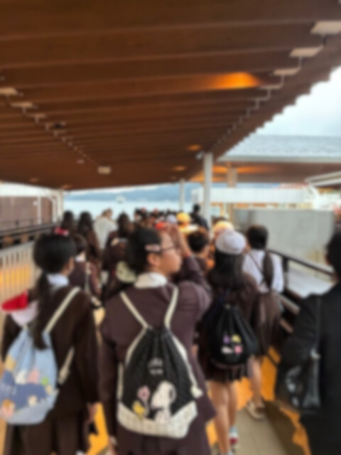 予定通り宮島口に到着し、フェリーに乗って宮島に向かいます。