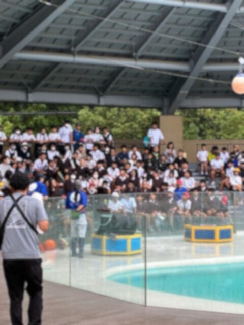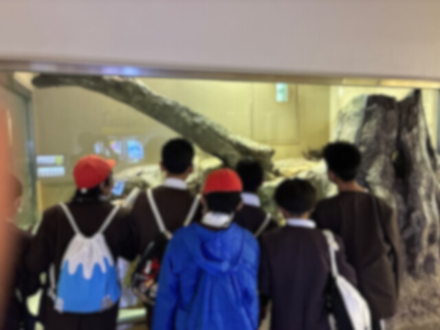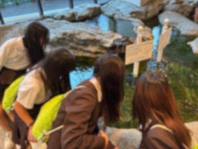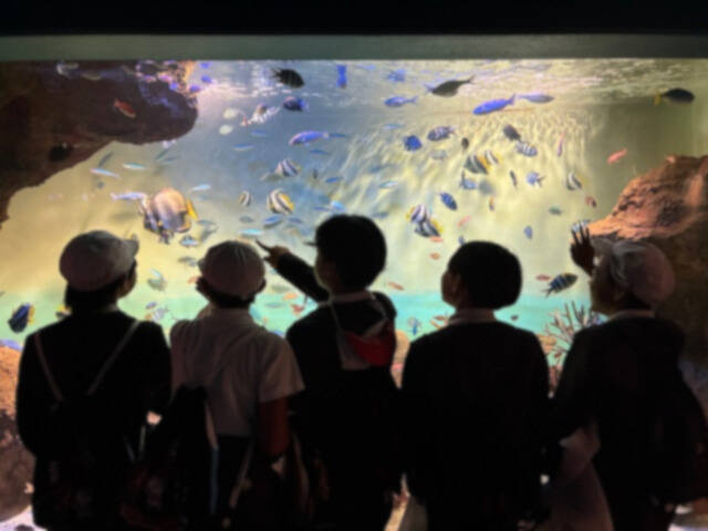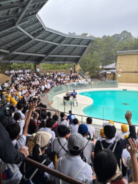 アシカショーなど自分たちで考えたコースで班ごとに宮島水族館を見学しています。