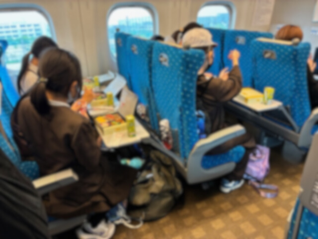 全員無事に新幹線に乗り換え、昼食をとりながら、広島に向かっています。