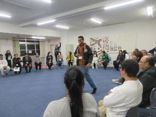 まず、中島みゆきさんの「糸」を歌って、次に、各国のみなさんがそれぞれの国の言葉で挨拶をしたり歌ったり踊ったりという出し物を見ていただきました。